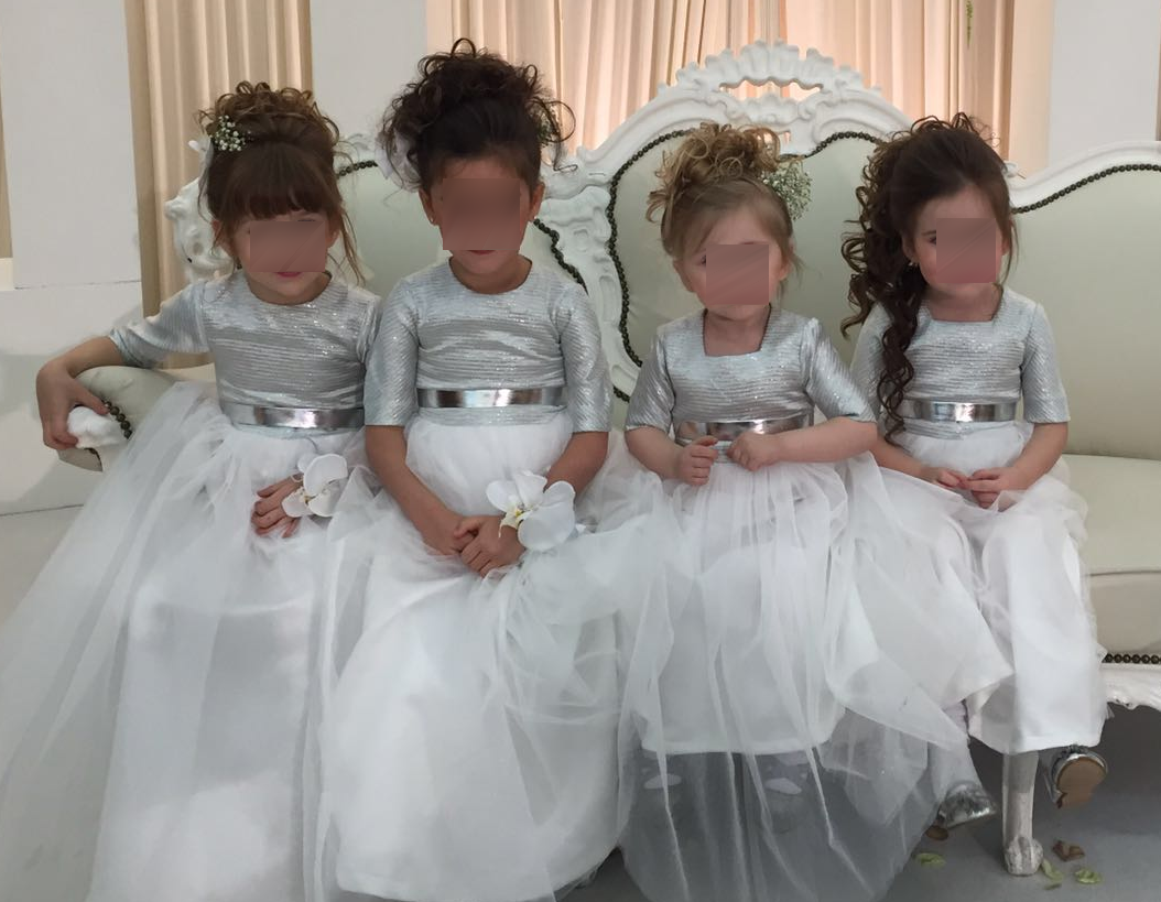 תאור הסט: סט נסיכותי לילדות, חלק עליון מטאלי כסוף, חלק תחתון טול עדין נפוח וארוך. (חגורה כסף מחוברת לשמלה).